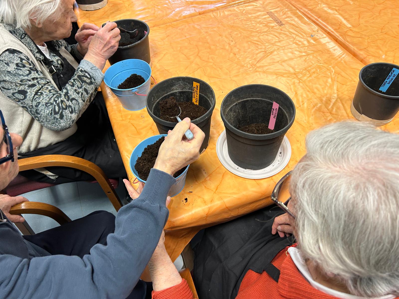 I primi incontri si sono incentrati sulle attività manuali di travaso, manipolazione e sistemazione di piante decorative in vaso, attività che nella maggior parte dei casi ha risvegliato ricordi del passato nei contadini più esperti o fra esperienze di vita famigliare in campagna. Sono state occasione di scambio e condivisione, di risate, ascolto ed emozione.