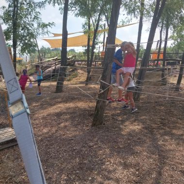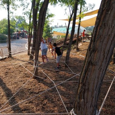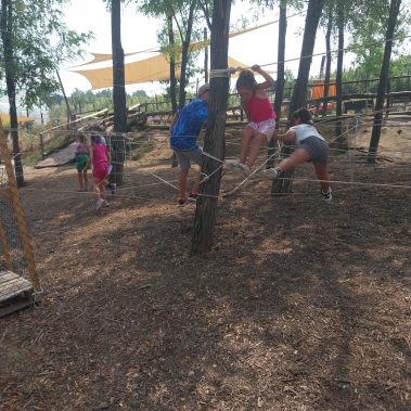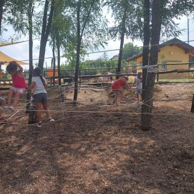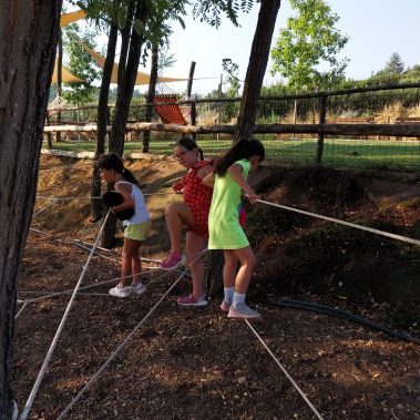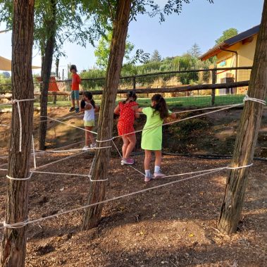 Uno degli elementi caratterizzanti del nostro campus estivo targato Fattoria Verde-Commerce sono le giornate all’aria aperta. Durante le varie settimane, i bambini hanno a disposizione dei momenti di autogestione e gioco libero, in cui imparano a gestire varie dinamiche sociali, con l’aiuto degli educatori, che sorvegliano questi momenti. I bambini potranno usufruire di ampi spazi verdi e in particolare di un percorso con le corde, che si compone di un ponte tibetano, un ponte dei pirati e una ragnatela. Si tratta di un gioco ludico, atto a stimolare lo sviluppo sensomotorio dei bambini, a partire dalla materna, fino alle medie. Si tratta di un’esperienza arricchente per i partecipanti, offrendo divertimento, ma anche per apprendere e sperimentare.
