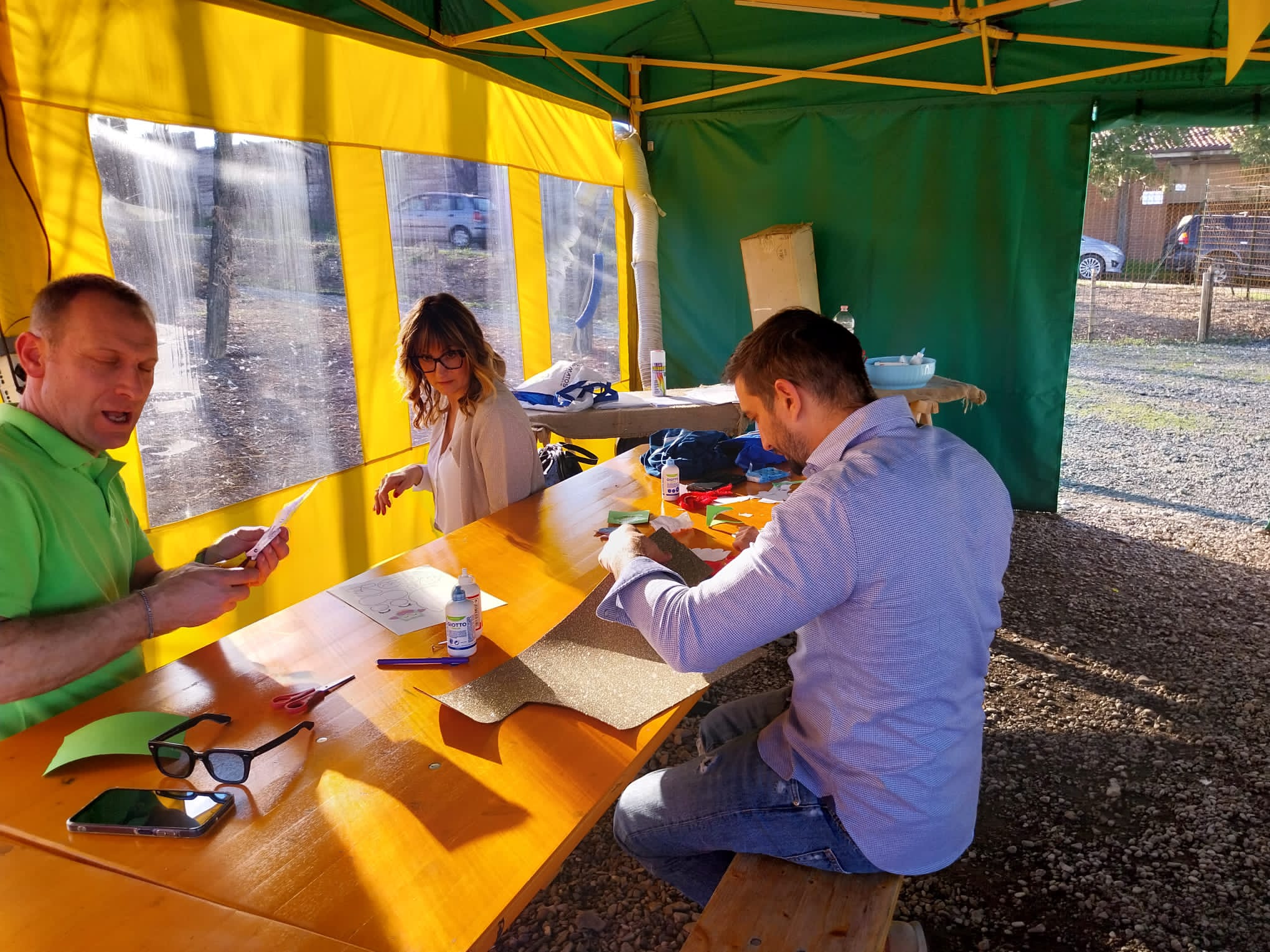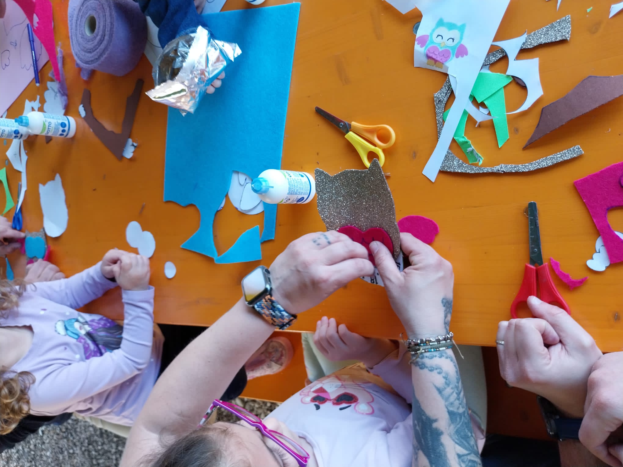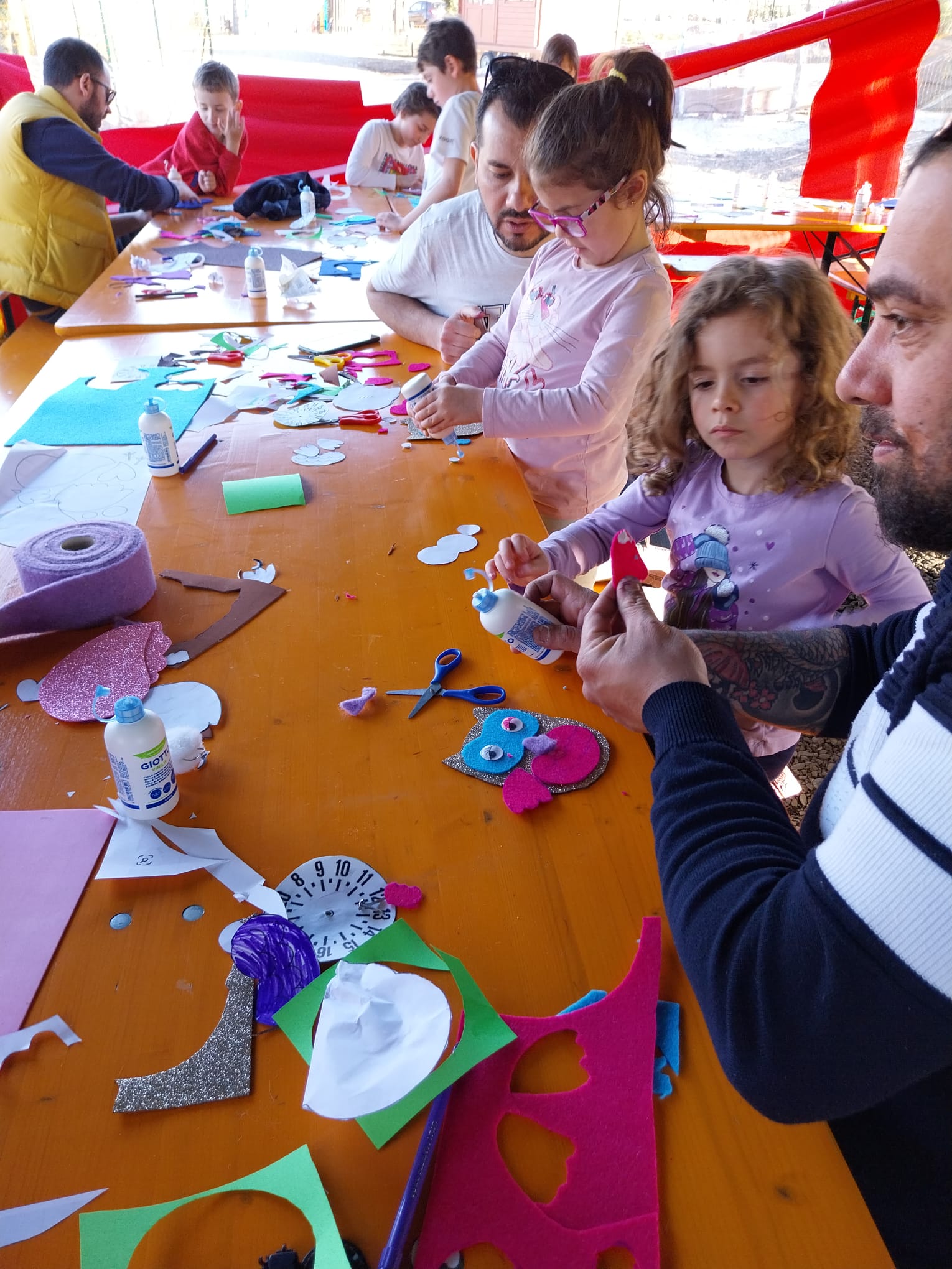 Ciascuno ha scelto il cartamodello più adatto alle proprie esigenze e dopo un’attenta attività di taglio, è stato sagomato il feltro del colore desiderato. Successivamente si è passati al disco e una volta rinforzato con un cartoncino, è stato tagliato a misura. Assemblate le varie pezze di feltro, grazie a un fermacampione i bimbi hanno concluso il laboratorio, per poi svagarsi insieme ai papà all’aperto!