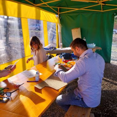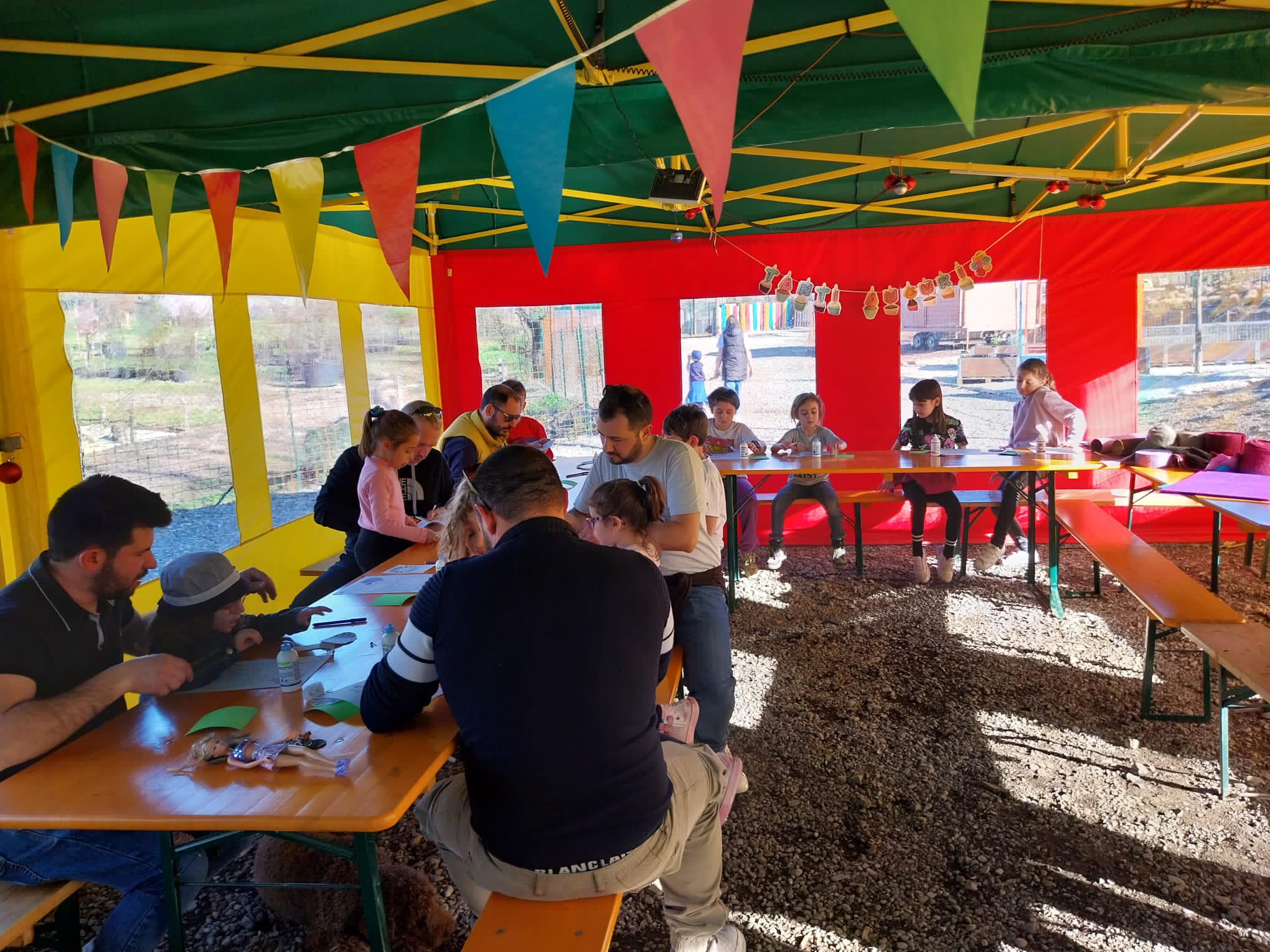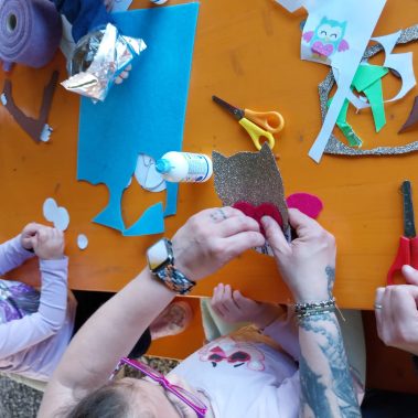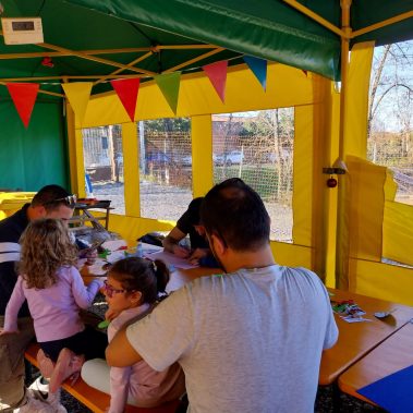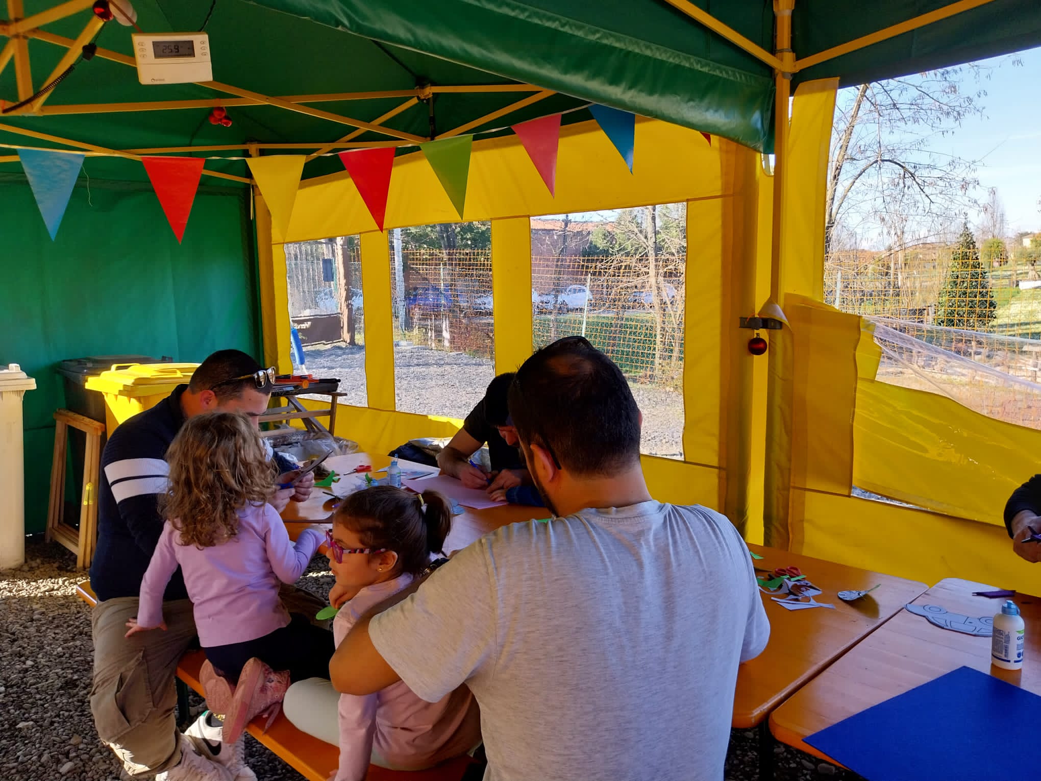 Ciascuno ha scelto il cartamodello più adatto alle proprie esigenze e dopo un’attenta attività di taglio, è stato sagomato il feltro del colore desiderato. Successivamente si è passati al disco e una volta rinforzato con un cartoncino, è stato tagliato a misura. Assemblate le varie pezze di feltro, grazie a un fermacampione i bimbi hanno concluso il laboratorio, per poi svagarsi insieme ai papà all’aperto!
