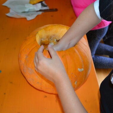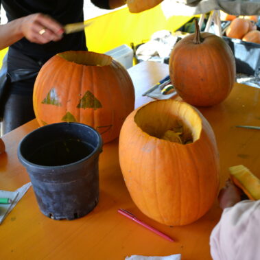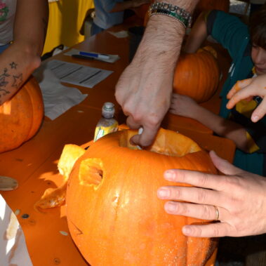 I partecipanti si sono cimentati in facce personalizzate, dalle bocche spalancate, agli occhi triangolari, fino ad arrivare alle più raffinate con le ciglia! Ci siamo divertiti un mondo, immergendo le mani all’interno delle teste di zucca per estrarre il loro viscido cervello. Una delle lezioni più importanti, soprattutto per i più piccoli, è stata l’affrontare la paura del viscido, affondando le mani nella polpa delle zucche.